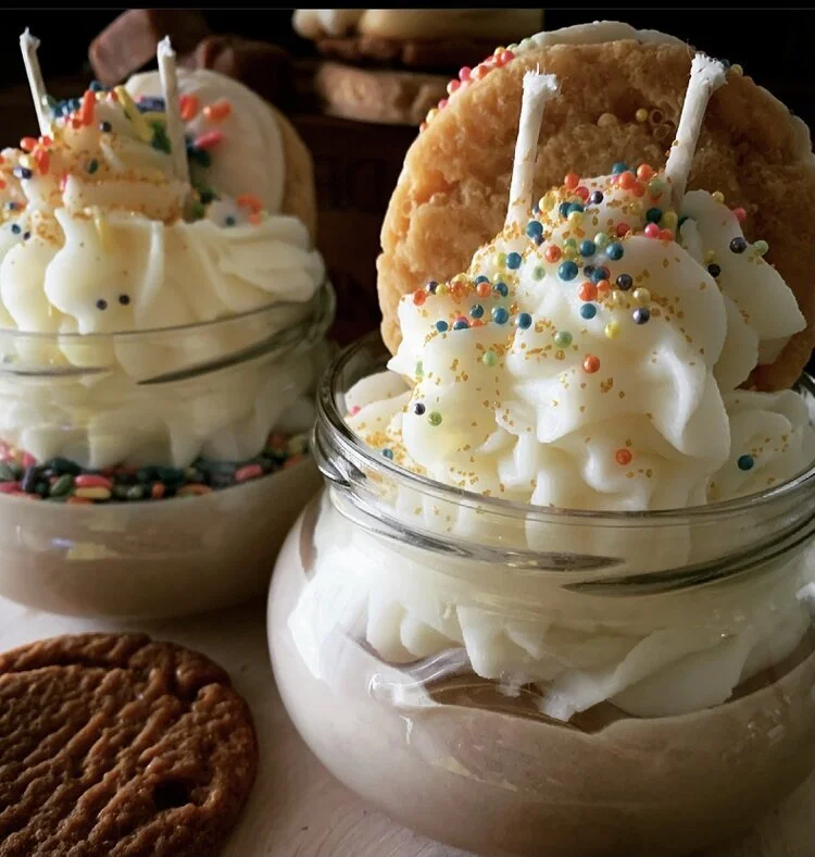 Candles are made with natural soy wax and premium fragrances to mimic your favorite desserts and treats!